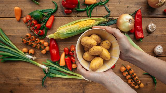 – Sayuran, seperti jagung, kacang lima, kacang polong dan kentang.
