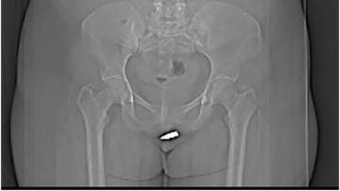 Dikutip dari laman Sciencedirect, saat pemeriksaan panggul terlihat jelas peluru tertahan di bagian tersebut. Selain dilihat dari CT Scan, peluru tersebut juga dapat terasa saat diraba secara langsung.