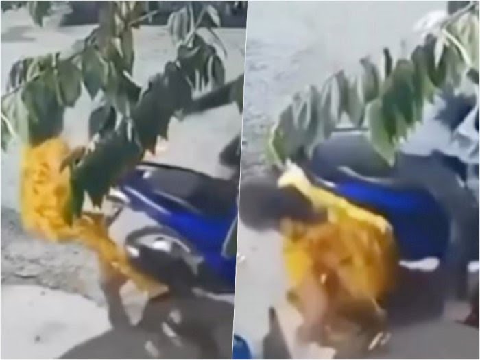 Seperti yang terlihat di akun @fakta.indo, tampak seorang emak-emak berani melawan dua orang penjambret sekaligus.