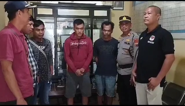 Dalam video yang di posting, nampak tampang pelaku pemalakan yang tengah didampingi aparat kepolisian dan desa.
