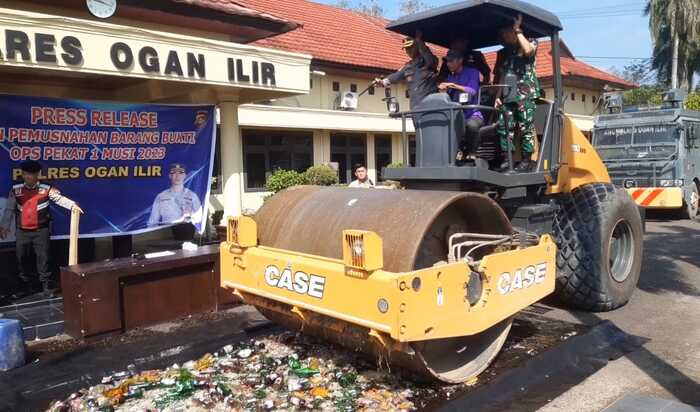 Pemusnahan sendiri dilakukan di halaman Mapolres Ogan Ilir. Selasa, 11 April 2023 dengan menggunakan alat berat. Ratuasan miras dan petasan itu kemudian dimusnahakan dengan cara di gilas.