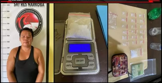 Dari hasil penangkapan dan penggeledahan rumah tersangka tersebut berhasil diamankan barang bukti satu bungkus plastik klip bening besar yang diduga berisikan narkotika jenis shabu dengan berat brutto 6,59 gram. delapan belas bungkus plastik klip bening (kecil) yang diduga berisikan narkotika jenis shabu dengan berat brutto 4,25 gram, uang tunai Rp 225.000, dan tiga alat hisap shabu (bong) serta satu dompet kecil.