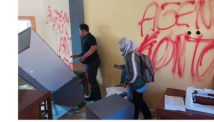 Dalam aksi tersebut, mereka juga mencoret-coret ruang yayasan menggunakan pilox. Mereka menguasai ruang yayasan dan membuat ruangan tersebut berantakan. Hingga beberapa perabot mengalami kerusakan. Bahkan, meja-meja tidak beraturan, tidak pada tempatnya. Laptop yang berada di ruang tersebut juga tidak terlihat. Saat ditemui di lokasi, kepala sekolah belum bersedia memberi keterangan atas aksi tersebut.