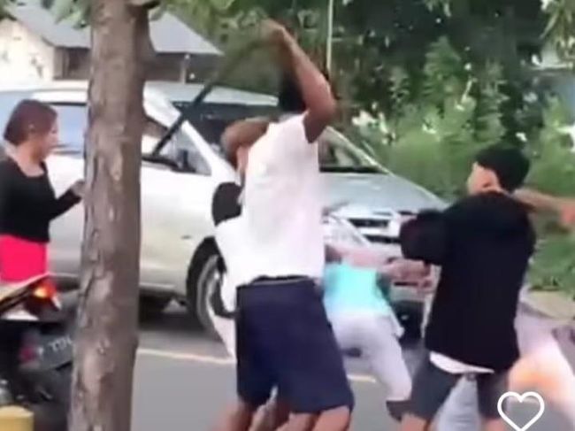 Video itu menunjukkan seorang pemuda berkaus biru seperti sedang dikeroyok beberapa pemuda lain.