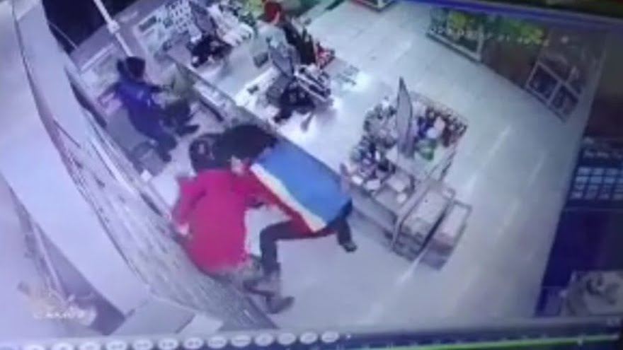 Dalam video tersebut, pelaku yang mengenakan jaket merah berhelm tersebut masuk ke meja kasir yang saat itu tengah dijaga seorang pegawai perempuan. Pegawai tersebut tampak ketakutan saat ditodong menggunakan senjata diduga pistol. Pelaku kemudian membuka laci kasir dan nampak mengambil sejumlah uang.
