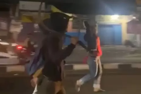 Dalam video yang beredar tampak beberapa orang menenteng senjata tajam berukuran besar di tengah jalan. Dengan gagahnya, sekelompok remaja berteriak-teriak tanpa memerhatikan kondisi di sekitarnya.