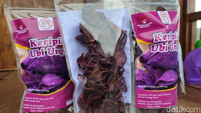 “Untuk harganya yang basah itu Rp 2 ribu satu buah, sedangkan brownies Rp 50 ribu. Kalau untuk yang kering satu kantong Rp 15 ribu. Semuanya terbuat dari ubi ungu,” ujar Kepala Desa Jalatran Dadi Haryadi alias Asdad.