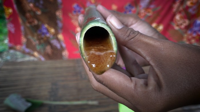 Nira aren dimasak hingga mendidih dan menyusut. Sebelum teksturnya berubah menjadi lebih padat, nira aren lalu dimasukkan ke dalam potongan bambu.