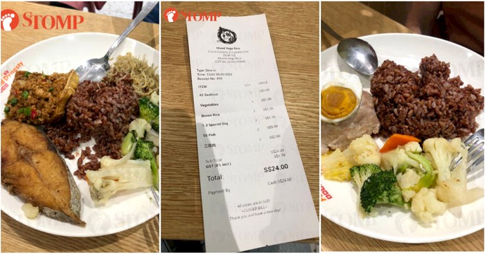 Sedangkan pada piring satunya tersaji nasi merah dengan cincangan daging, setengah buah telur rebus serta tumisan sayur. Tetapi untuk kedua makanan ini ia tiba-tiba ditagih 24 Dollar Singapura atau setara dengan Rp 265.000.
