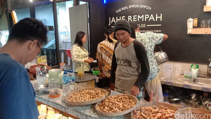 “Jahe rempah pun juga menyehatkan karena hasil bumi dan alami. Di sini ada berbagai rempah-rempah, ada jahe rempah, jahe rempah susu, jahe rempah serai, ada wedang uwuh, wedang roti dan macam-macam rempah-rempah,” jelasnya.