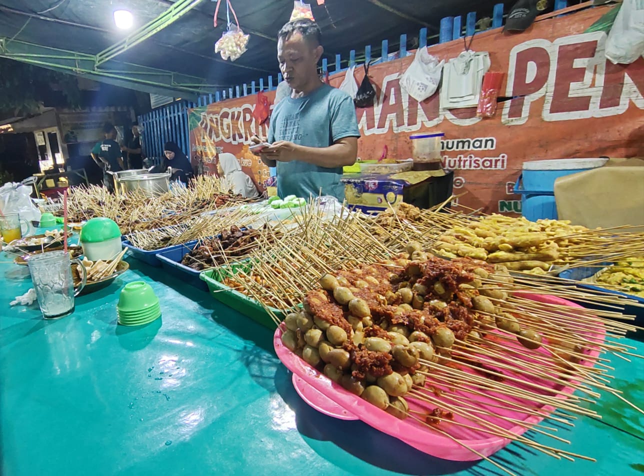 Selain aneka sate, Angkringan Mang Pen juga menyediakan aneka gorengan serta aneka pempek dan berbagai jenis minuman mulai dari minuman hangat dan dingin.