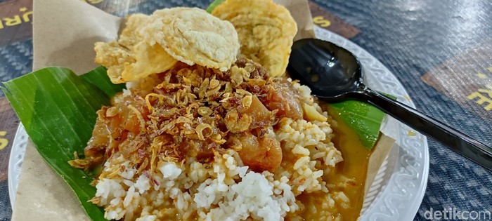 Semarang – Nasi glewo adalah kuliner Semarang yang unik, namun kini keberadaannya semakin langka. Tak banyak penjual menawarkan nasi dengan kuah santan dan lauk urat sapi ini.