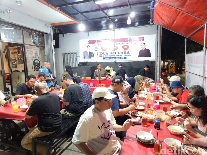 Gerai yang buka mulai pukul 17.00 ini diakui oleh Hadi akan semakin ramai ketika malam menjelang. Bahkan tidak jarang banyak pelanggan yang sampai rela antre untuk mendapatkan tempat duduk karena tenda sop kambing yang sudah penuh menampung pelanggan.