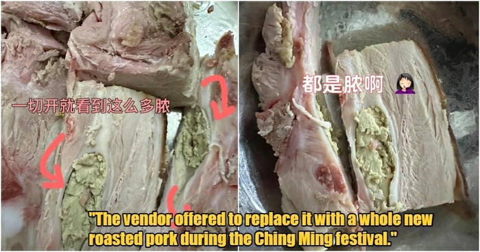 Wanita itu kemudian menghubungi vendor untuk meminta kompensasi, tetapi ditolak. Ia justru malah ditawari daging babi panggang pengganti untuk festival Ching Ming yang akan datang.