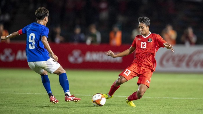 Duel Indonesia vs Kamboja di laga terakhir Grup A SEA Games 2023 digelar di Olympic Stadium, Phnom Penh, Rabu (10/5/2023) malam WIB. Babak pertama berakhir imbang 1-1.