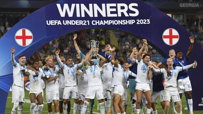 Batumi – Inggris sukses menjuarai Piala Eropa U-21 usai mengalahkan Spanyol di final 1-0. Gol tunggal kemenangan Tiga Singa lahir lewat Curtis Jones.