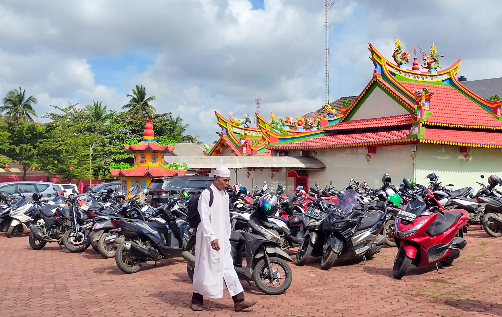 Salah satu pengurus kelenteng Yayasan Intan Pusaka, Nangcik (62) diwawancarai mengatakan setiap tahunnya menyediakan lahan parkir bagi para jemaah muslim dalam kegiatan tersebut.