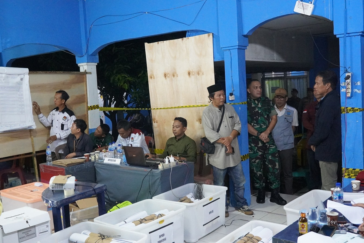 Sekitar pukul 11 malam, Aula kantor Camat Lempuing masih tampak ramai. Polisi juga memasang police line pada lokasi penghitungan.