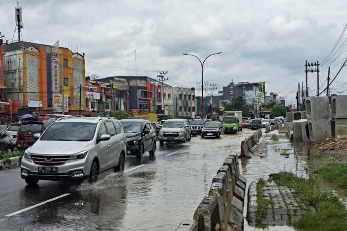 Pantauan SUMEKS.CO, Jumat 9 Desember 2022 siang, banjir yang Jl Basuki Rahmat di kawasan Hotel Harper Palembang, ketinggian air mencapai 20 cm. Seluruh kendaraan roda empat dan roda dua melintas terpaksa mengurangi kecepatan karena khawatir takut kendaraan terendam air.