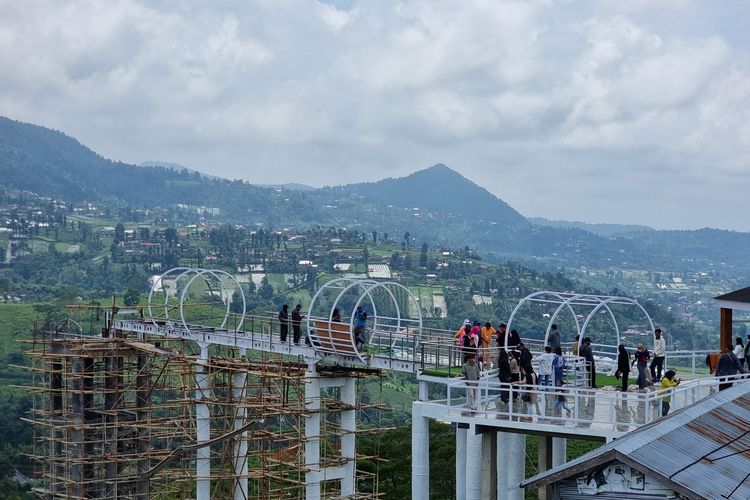 Diberitakan Kompas.com, Senin (16/1/2022), meski pembangunan belum selesai wisatawan sudah boleh berkunjung. Nantinya, jembatan kaca akan sepanjang 120 meter.